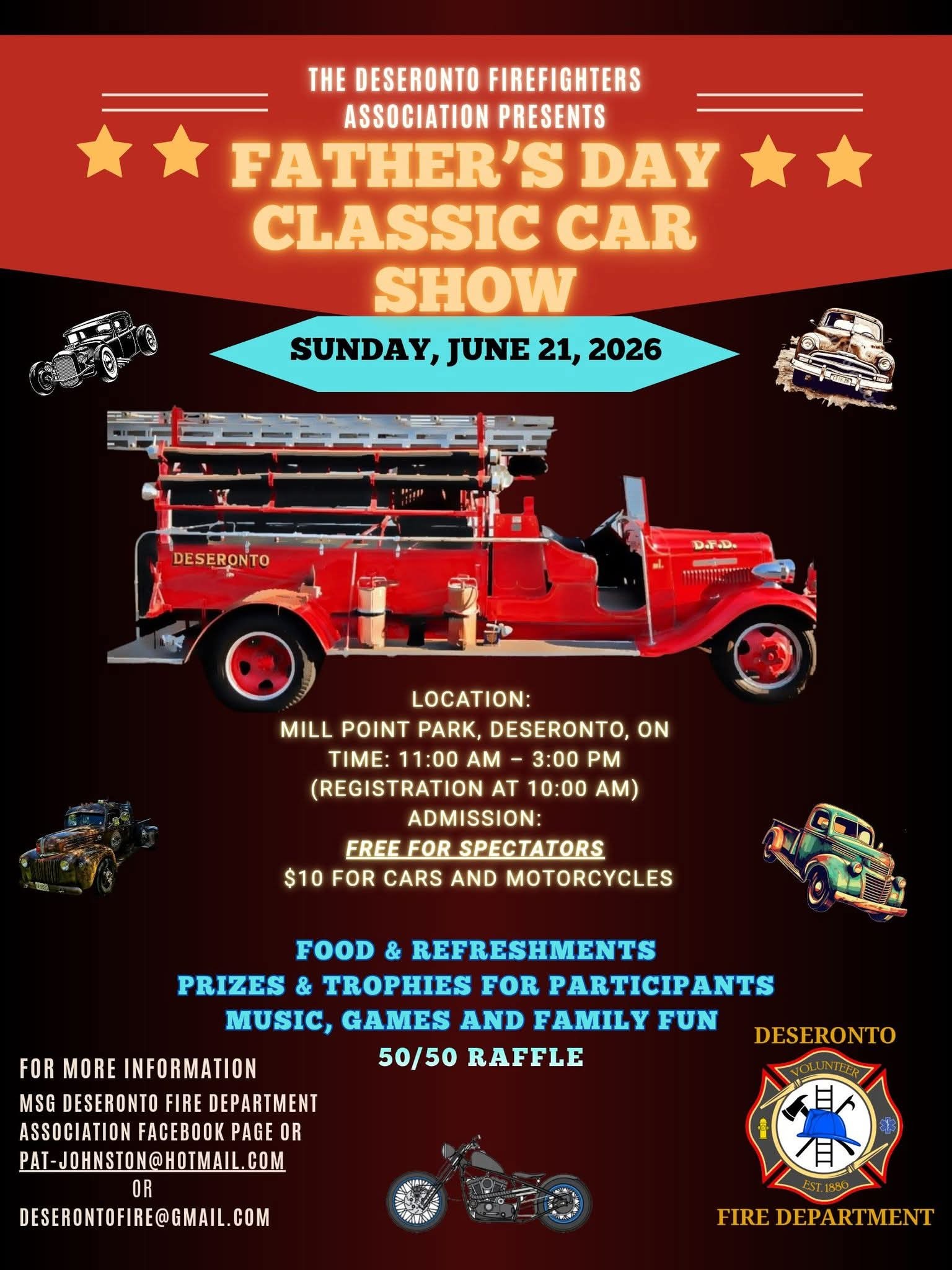 Food and refreshments will be available. Participants can win prizes and trophies. There will be music, games, and family fun, along with a 50/50 raffle.