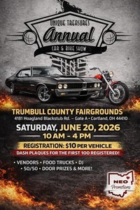Join us for the Unique Treasures Annual Car & Bike Show featuring vendors, food trucks, a DJ, a 50/50 draw, and door prizes. Dash plaques will be provided for the first 100 registered vehicles.