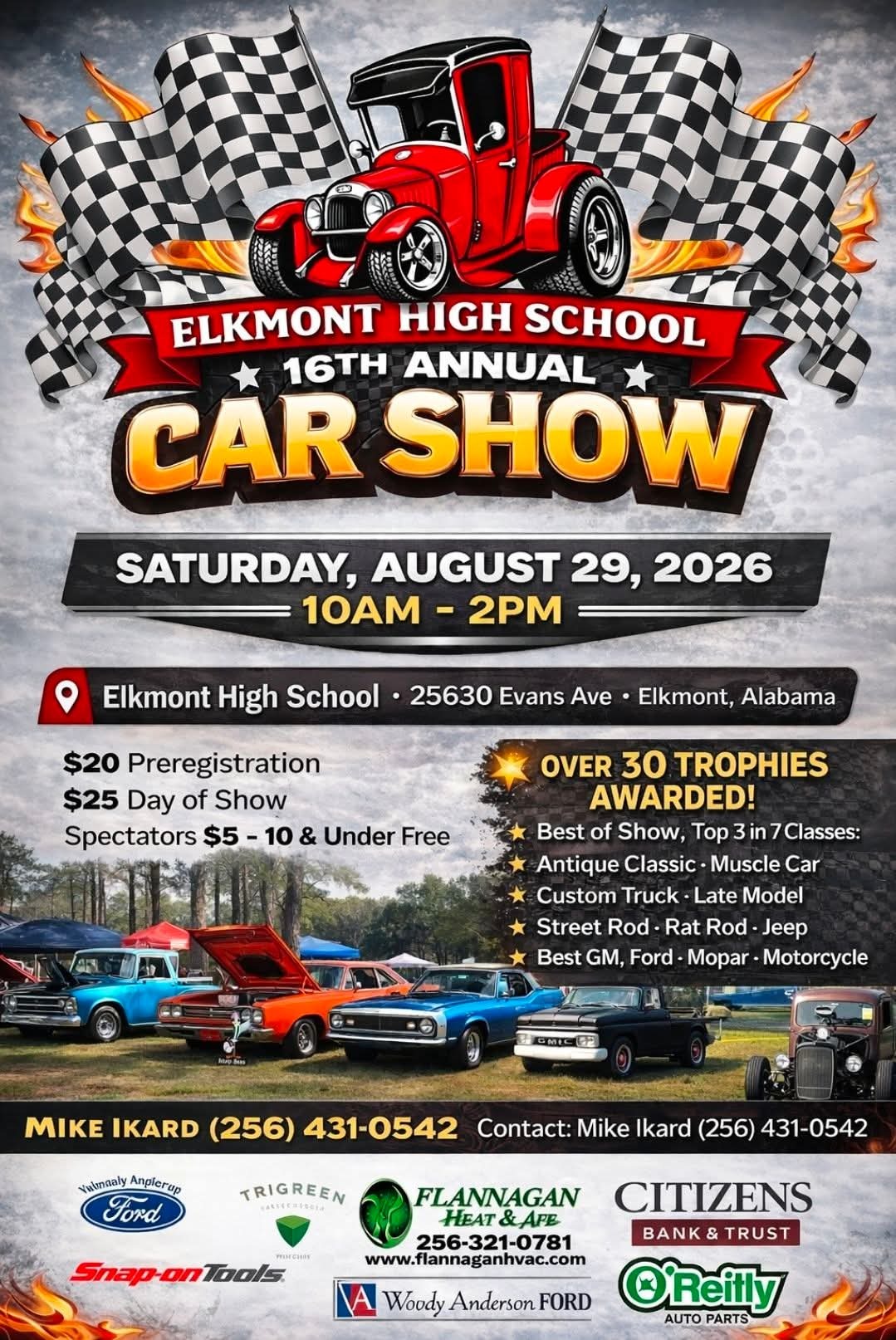 Event Sponsors: Vuymaaly Anplerup Ford, TriGreen, Flanagan Heat & Air, Citizens Bank & Trust, Snap-on Tools, Woody Anderson Ford, O'Reilly Auto Parts.