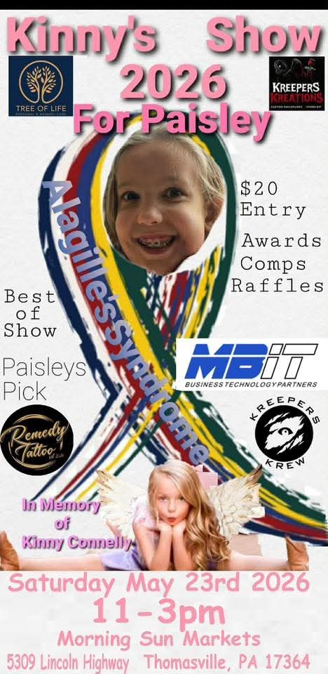 This event features a $20 entry fee for vehicles, with awards presented including 'Best of Show' and 'Paisley's Pick'. Attendees can enjoy competitions and participate in raffles. The event is held in memory of Kinny Connelly.