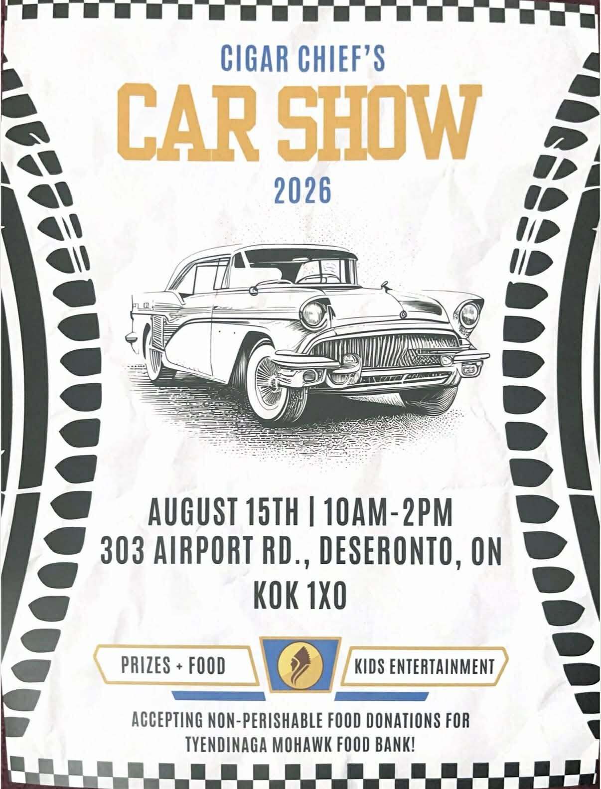 Join us for the Cigar Chief's Car Show! This event will feature prizes, food, and kids entertainment. We are accepting non-perishable food donations.
