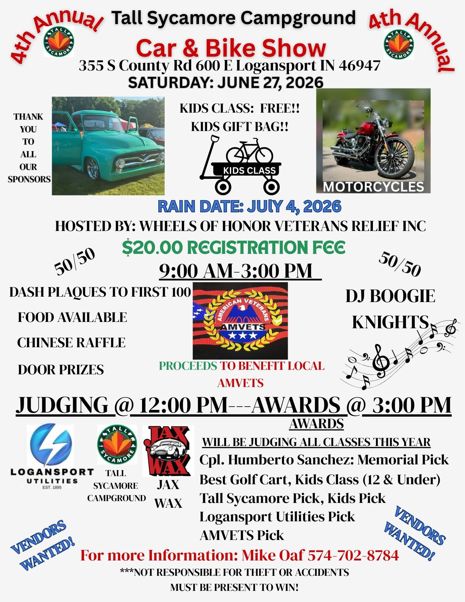 Event Sponsors: Logansport Utilities, Tall Sycamore Campground, Jax Wax