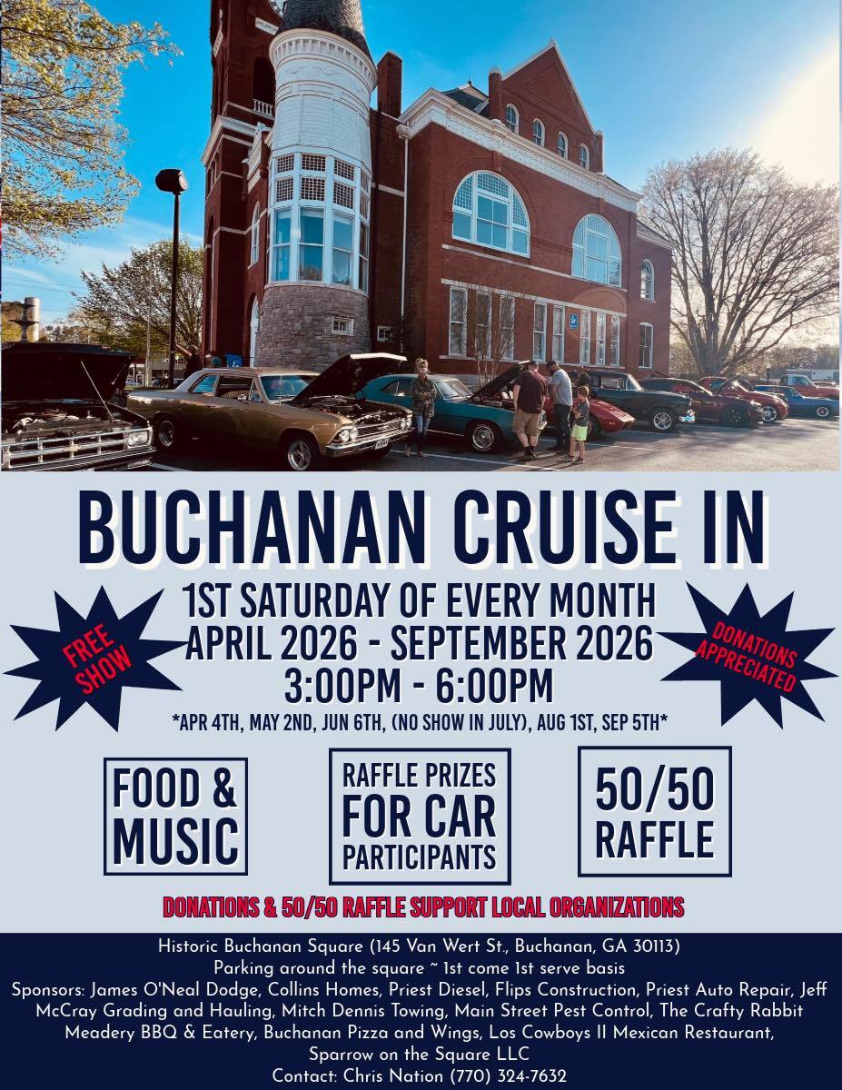 Event Sponsors: James O'Neal Dodge, Collins Homes, Priest Diesel, Flips Construction, Priest Auto Repair, Jeff McCray Grading and Hauling, Mitch Dennis Towing, Main Street Pest Control, The Crafty Rabbit, Meadery BBQ & Eatery, Buchanan Pizza and Wings, Los Cowboys II Mexican Restaurant, Sparrow on the Square LLC