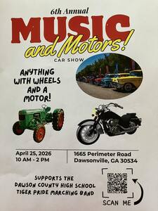This event is a car show for anything with wheels and a motor! Charities Supported are: Dawson County High School Tiger Pride Marching Band.