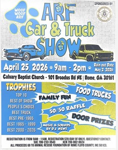 Join us for the ARF Car & Truck Show featuring family fun, food trucks, music and sounds by DJ Newt. There will be trophies awarded in categories such as Top 10, Best of Show, People's Choice, Best Truck, Best Pre-1965, Best 1965-1999, and Best 2000-2026. Take part in the 50/50 raffle and look forward to door prizes. Registration is from 9 AM to 11 AM.