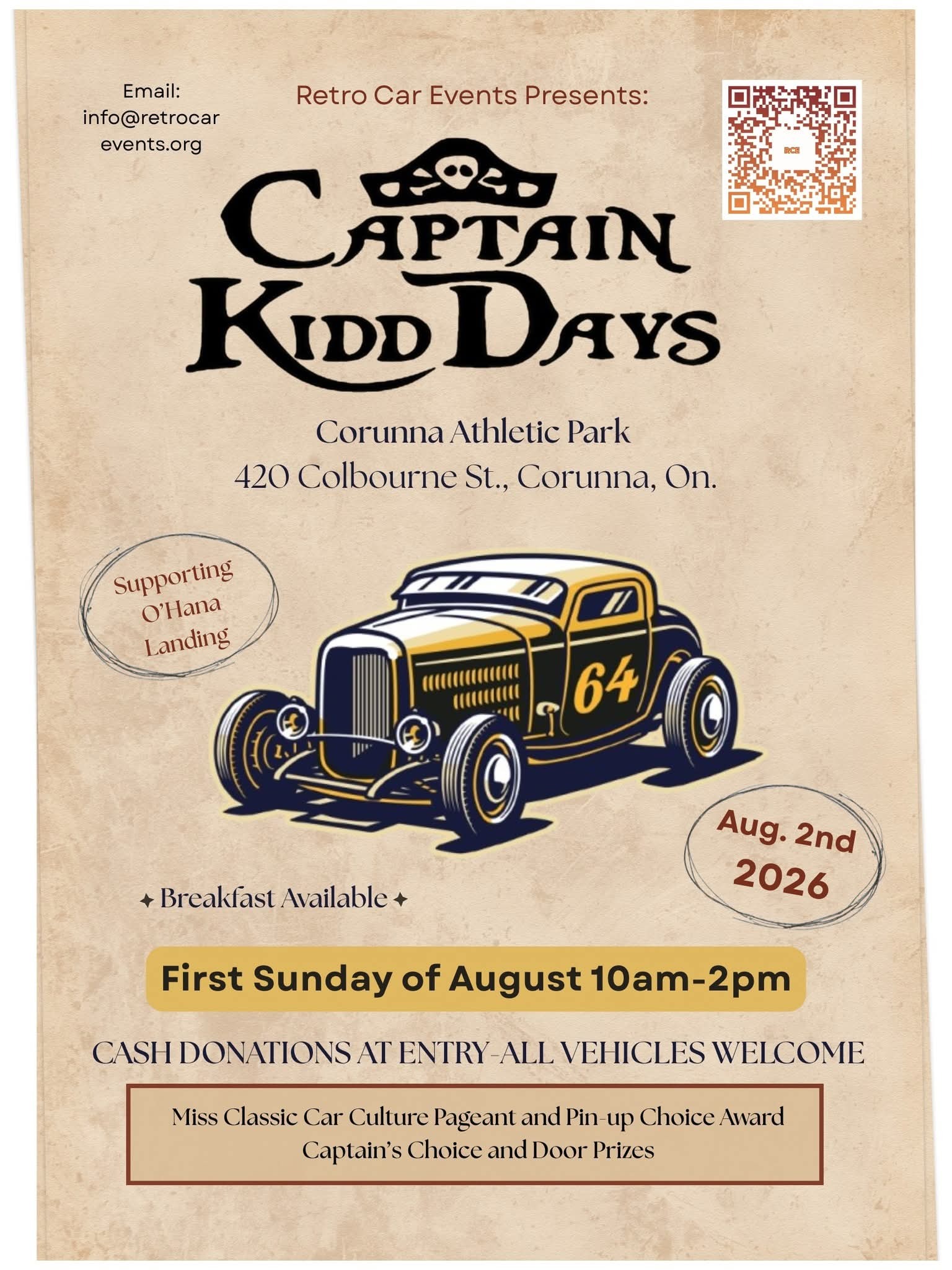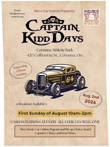 Breakfast is available at this event. The event will feature a Miss Classic Car Culture Pageant, a Pin-up Choice Award, a Captain's Choice award, and Door Prizes. All vehicles are welcome.